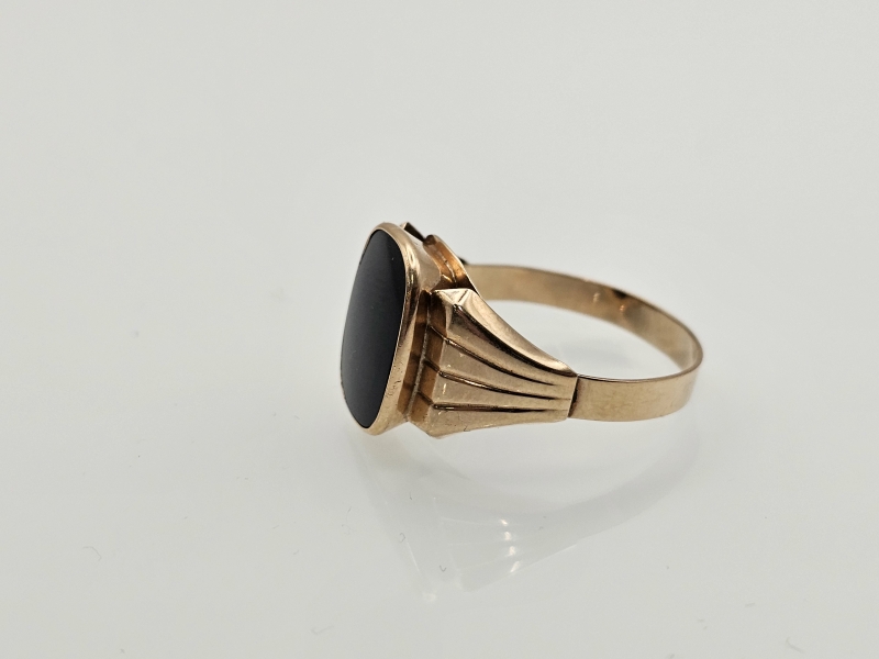 #1074 - 14k kultainen sormus mustalla kivellä, 3,95g