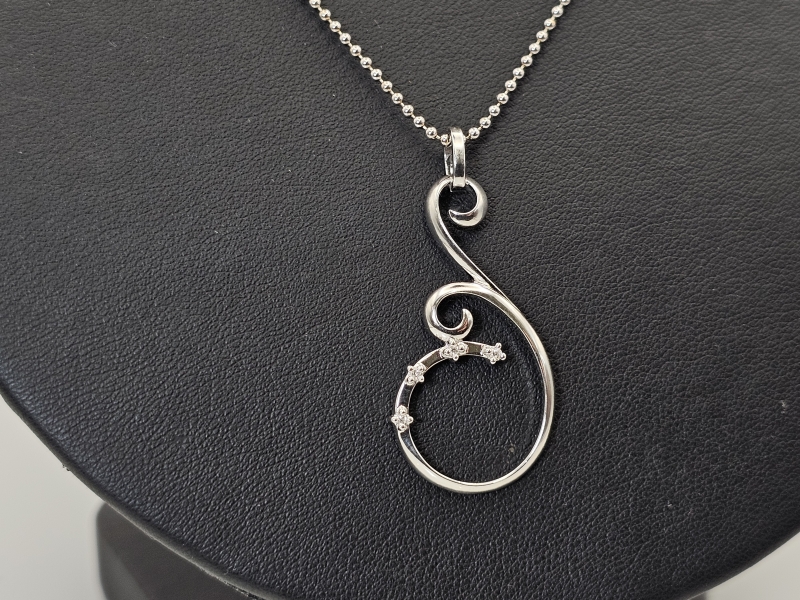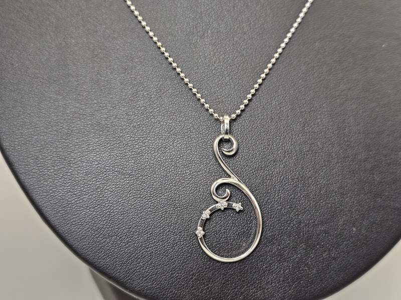 #1130 14k valkokultainen kaulakoru 4 timantilla [yhteensä n. 0,04ct], 7,3g