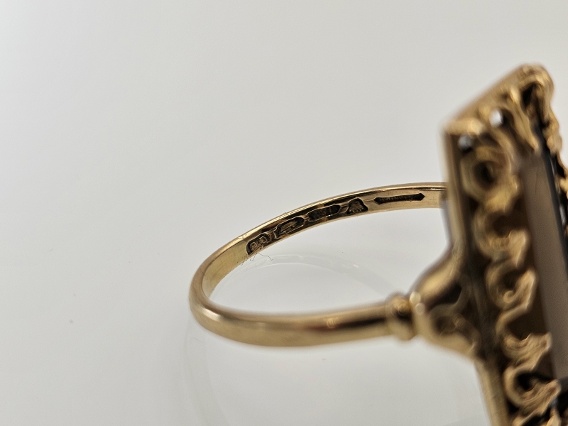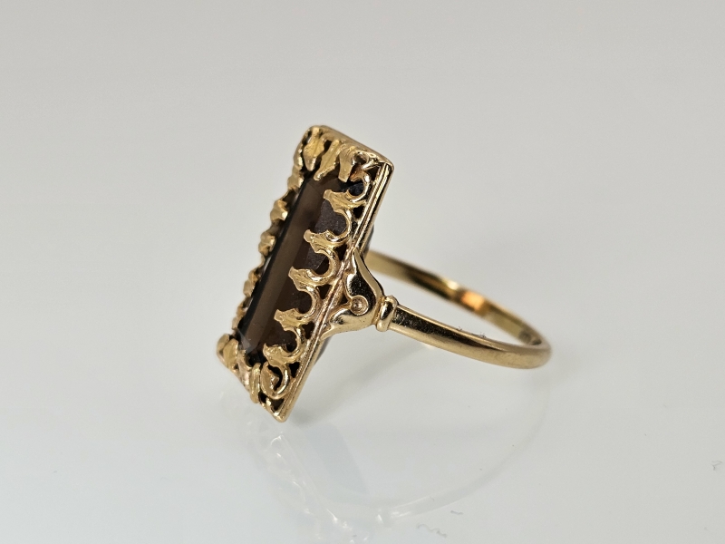 #1154 18k kultainen sormus savukvartsilla v.1936, 5,5g