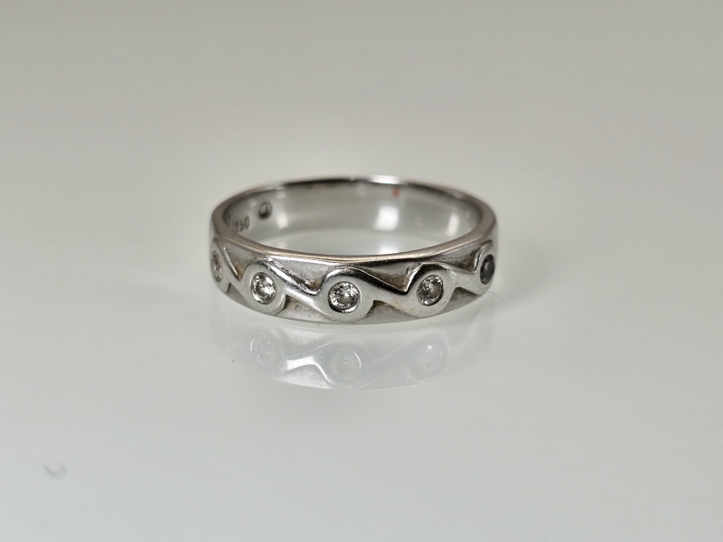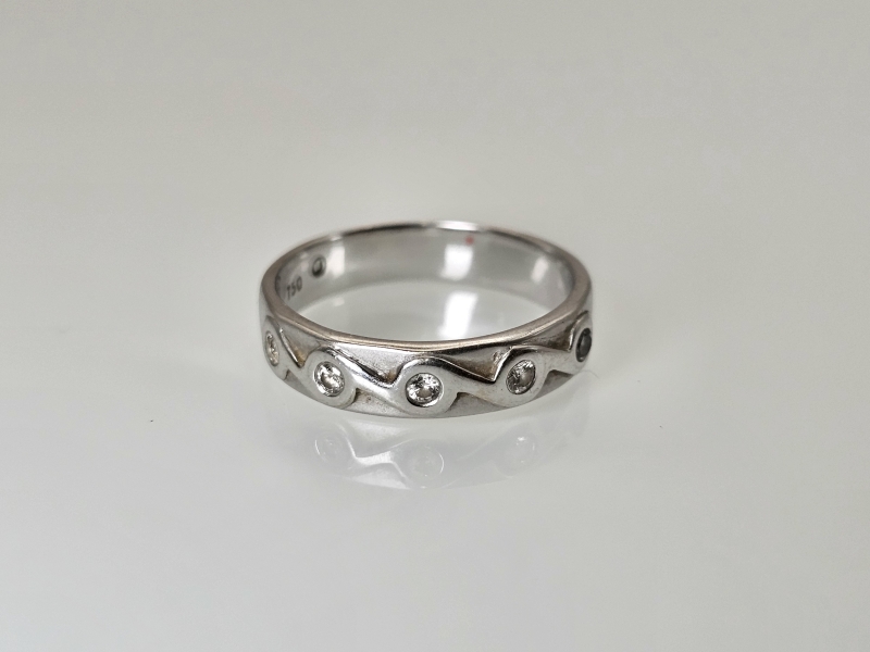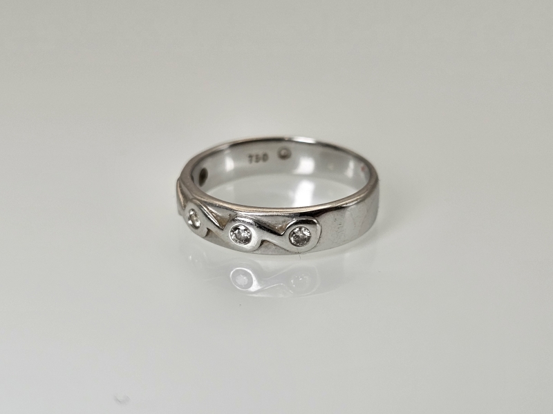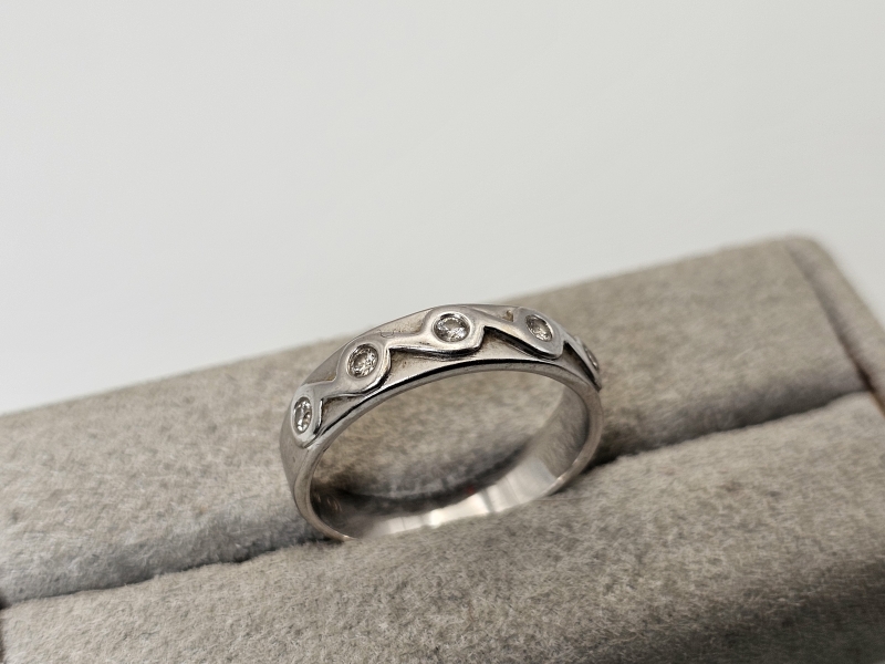 #1156 18k valkokultainen sormus viidellä timantilla, 4,37g