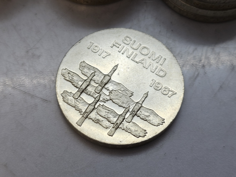 #1174 50kpl hopeisia juhlarahoja: 10mk Itsenäinen Suomi 50v
