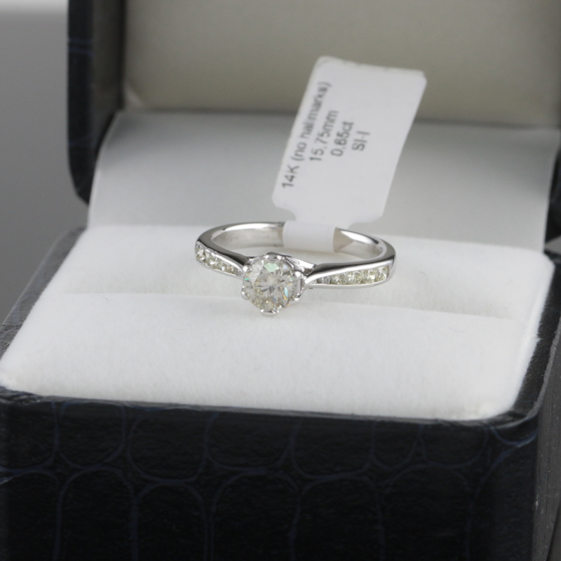 #1049 14k valkokultainen sormus timanteilla [yhteensä 0,65ct]