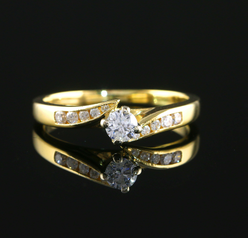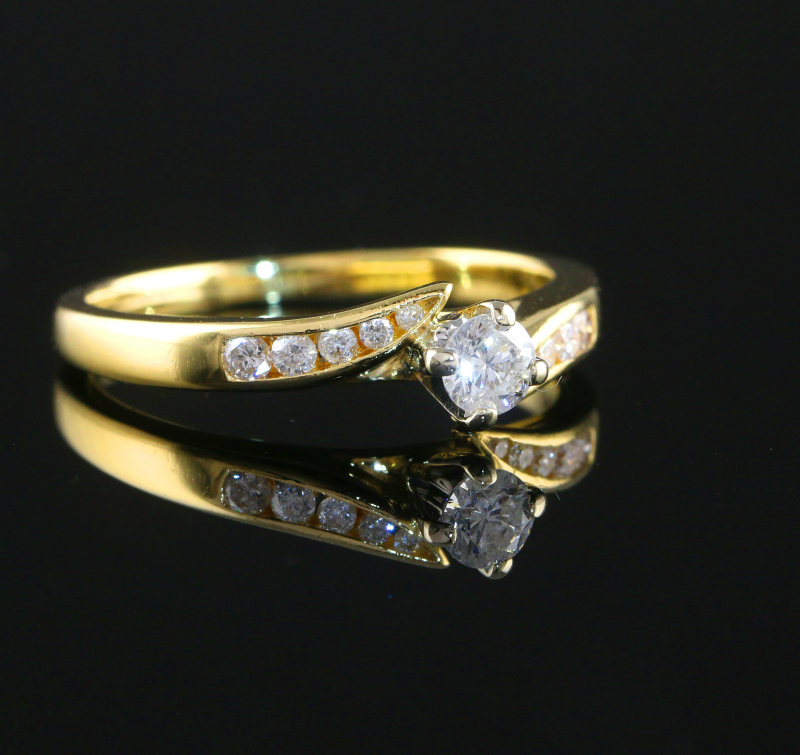 #1178 18k kelta- / valkokultainen sormus 11 timantilla [yht. 0,37ct], 3,27g