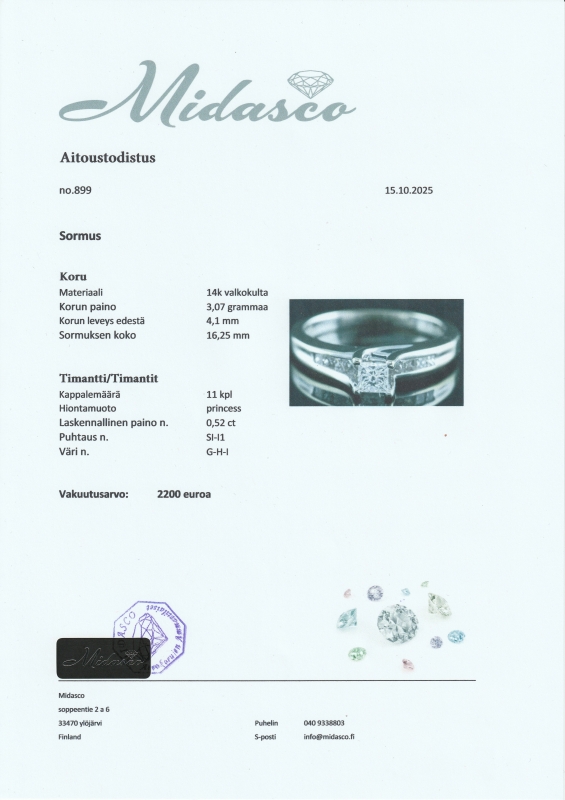 #1179 14k valkokultainen sormus 11 timantilla [yht. 0,52ct], 3,07g