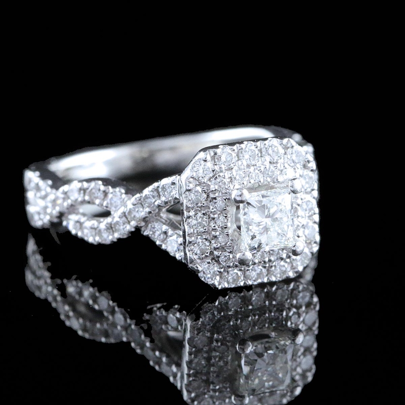 #1235 Platinasormus jossa 69 timanttia [yht. 1,00ct] ja 2 safiiria, 6,64g