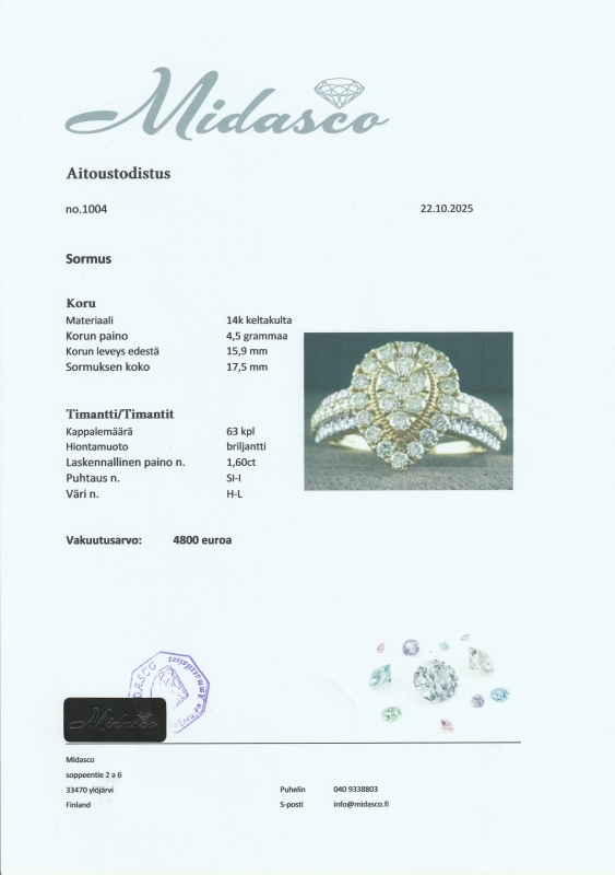 #1237 14k kultainen sormus 63 timantilla [yht. 1,60ct], 4,5g