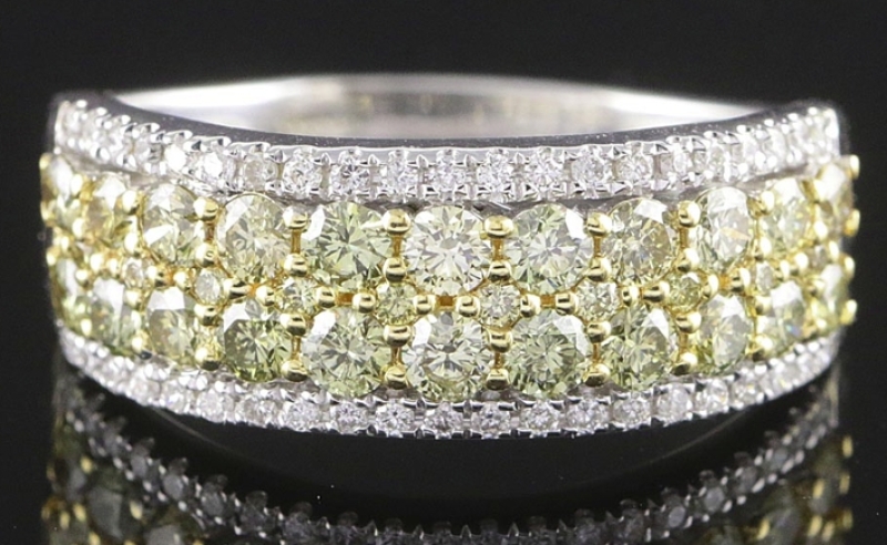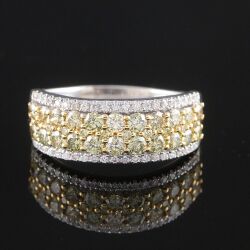 #1280 14k valkokultainen sormus jossa 42 timanttia [yht. 0,21ct] + 32 lab. timanttia [yht. 1,07ct], 3,86g