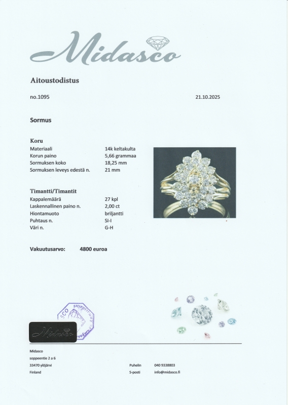 #1302 14k kultainen sormus 27 timantilla [yht. 2,00ct], 5,66g