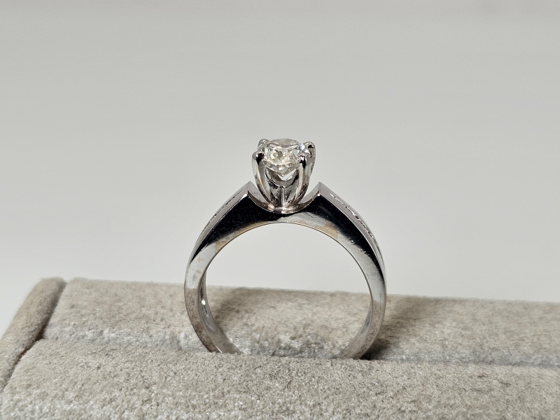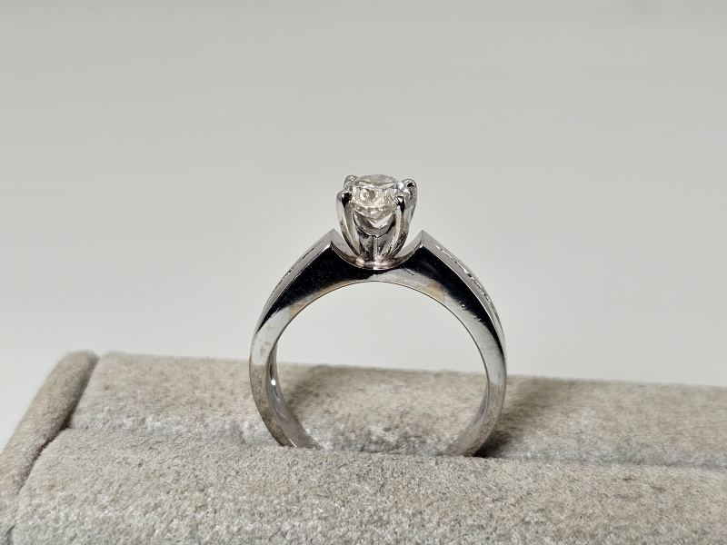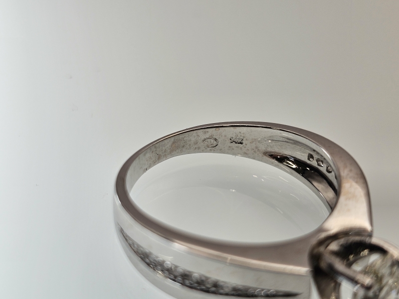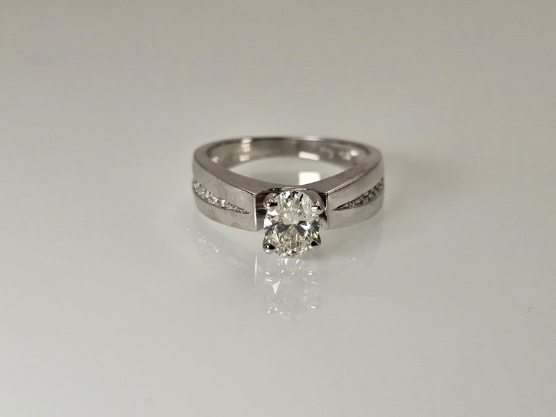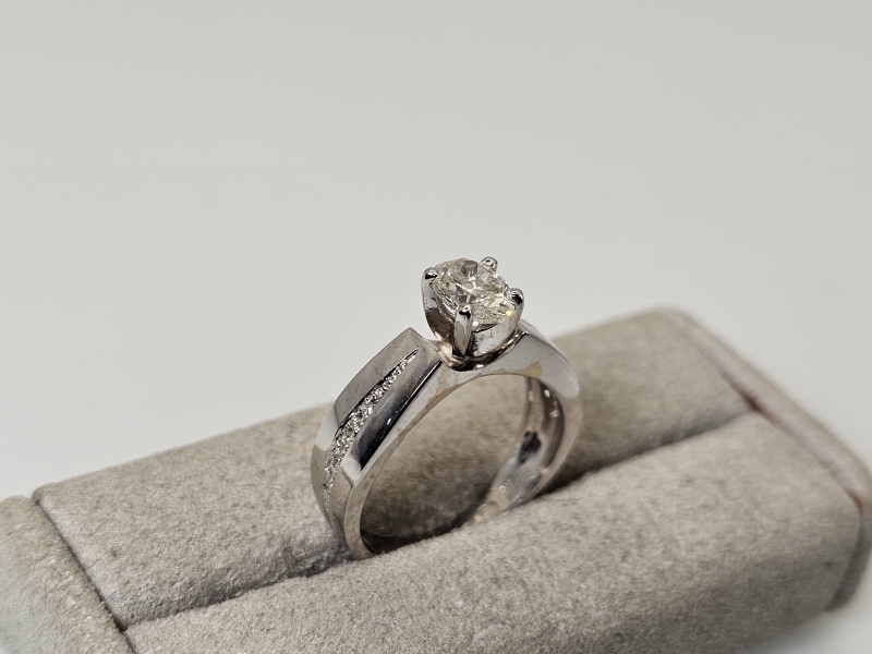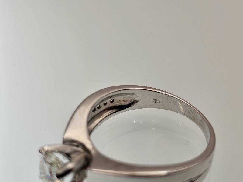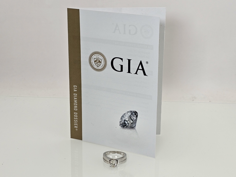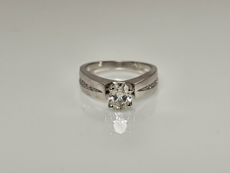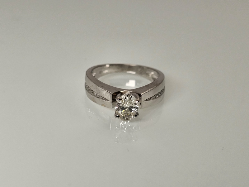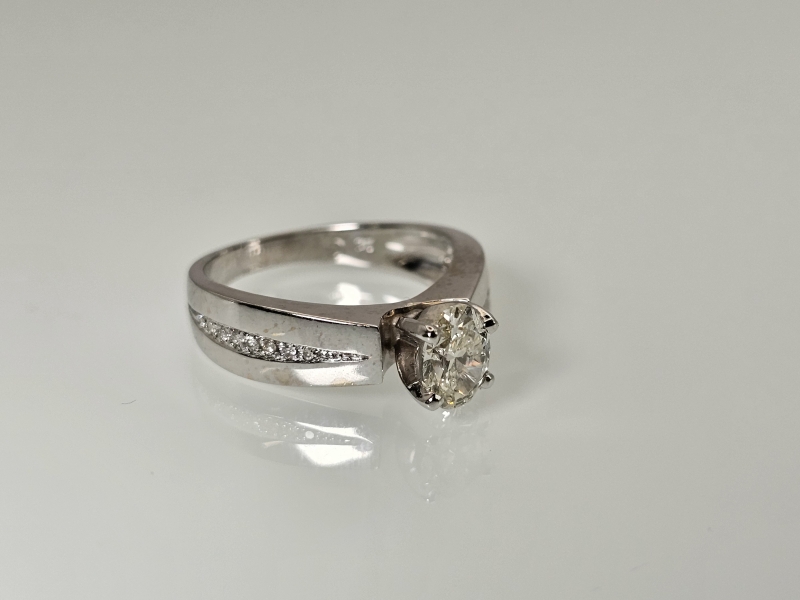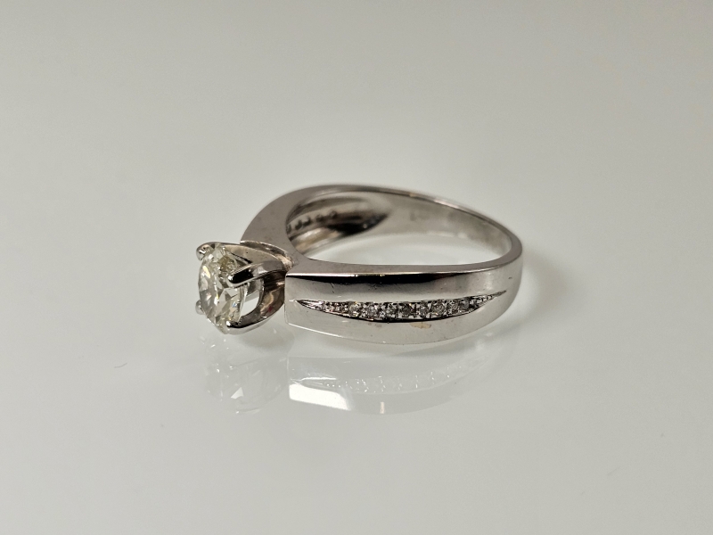 #1029 14k valkokultainen sormus timanteilla joista isoin 0,90ct + GIA -todistus, 5,41g