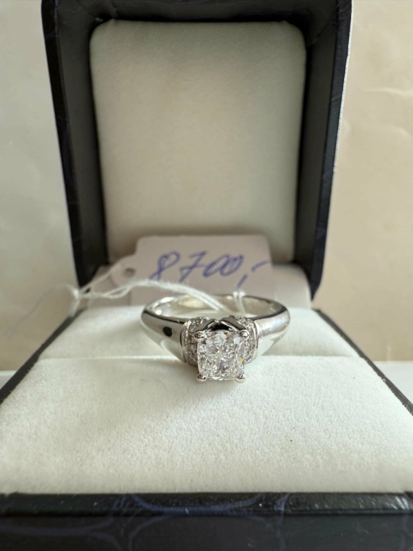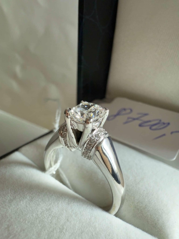 #1182 14k valkokultainen sormus timanteilla joista suurin 0.80ct + GIA -todistus, 6,75g