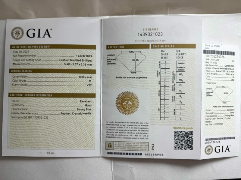 Bruttopaino 6,75g. Ei kaiverrusta. Koko 17,85. Mukana GIA -todistus. Timantissa kaiverrettu sertifikointinumero
