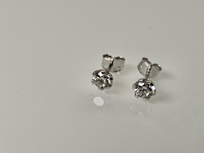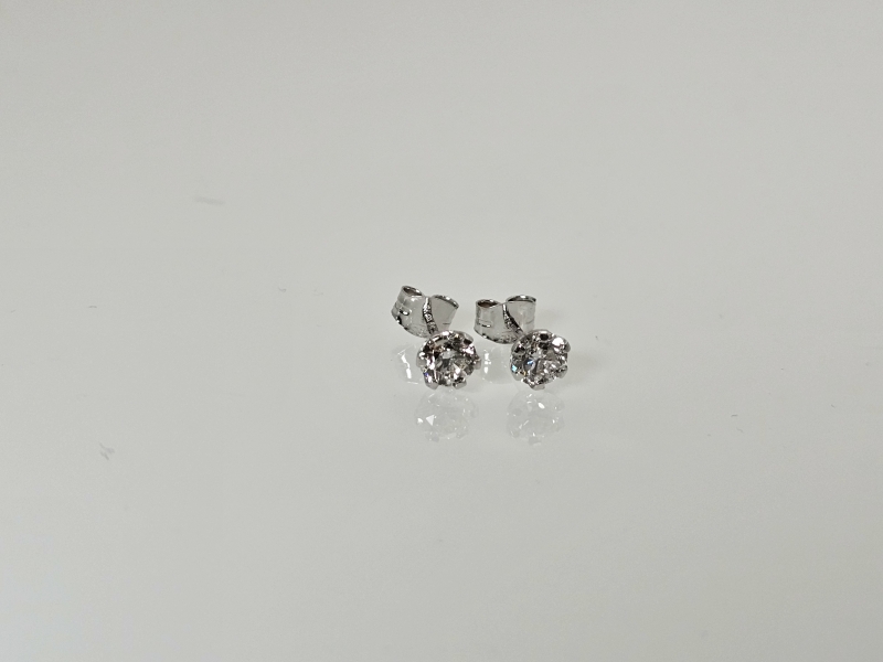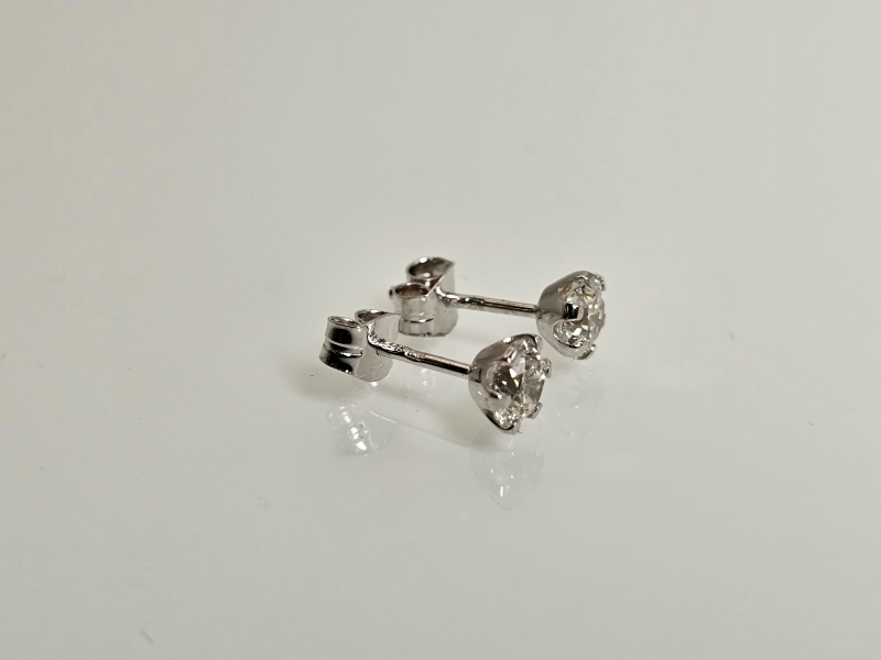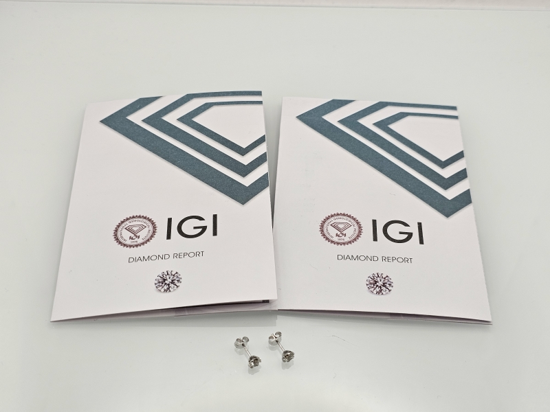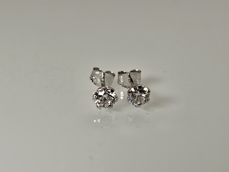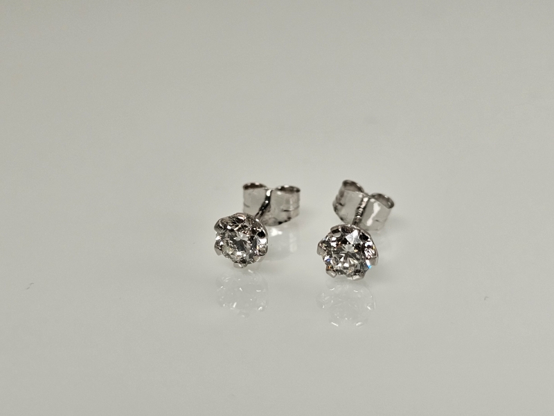 #1284 14k valkokultaiset korvakorut joissa molemmissa 0,40ct timantit + IGI -todistukset, 0,67g