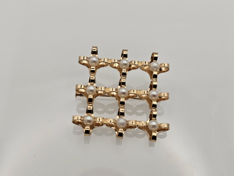 #1183 14k kultainen Elis Kauppi rintaneula helmillä, 7,9g