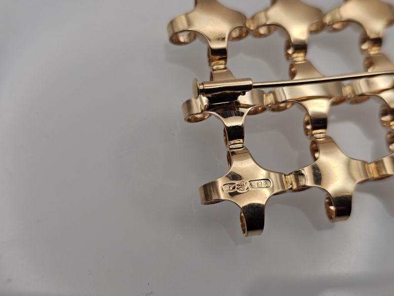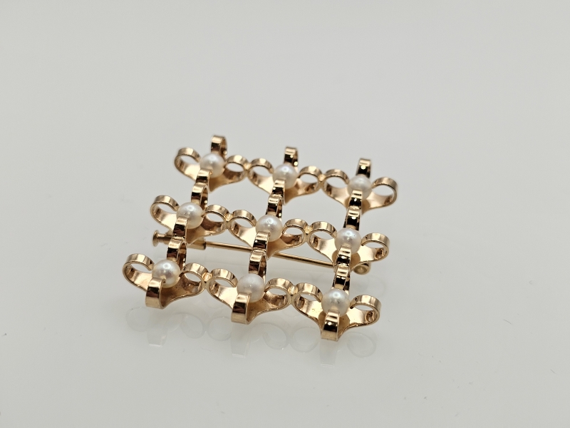 #1183 - 14k kultainen Elis Kauppi rintaneula helmillä, 7,9g