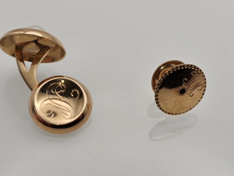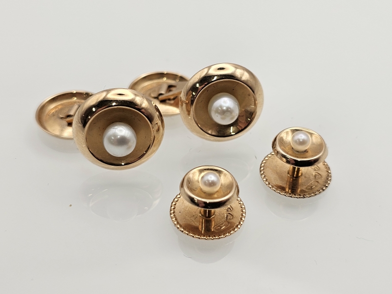 #1184 Kaksi paria 14k kultaisia kalvosinnappeja helmillä, 7,5g