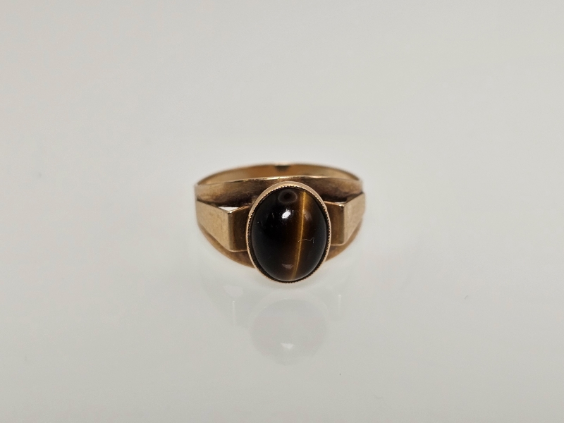 #1185 14k kultainen sormus tiikerinsilmällä, 2,54g