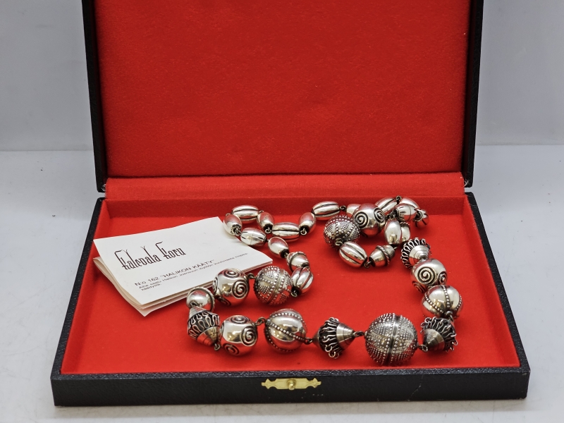 #1203 - Hopeinen Kalevala korun Halikon kääty -kaulakoru jatkopalalla