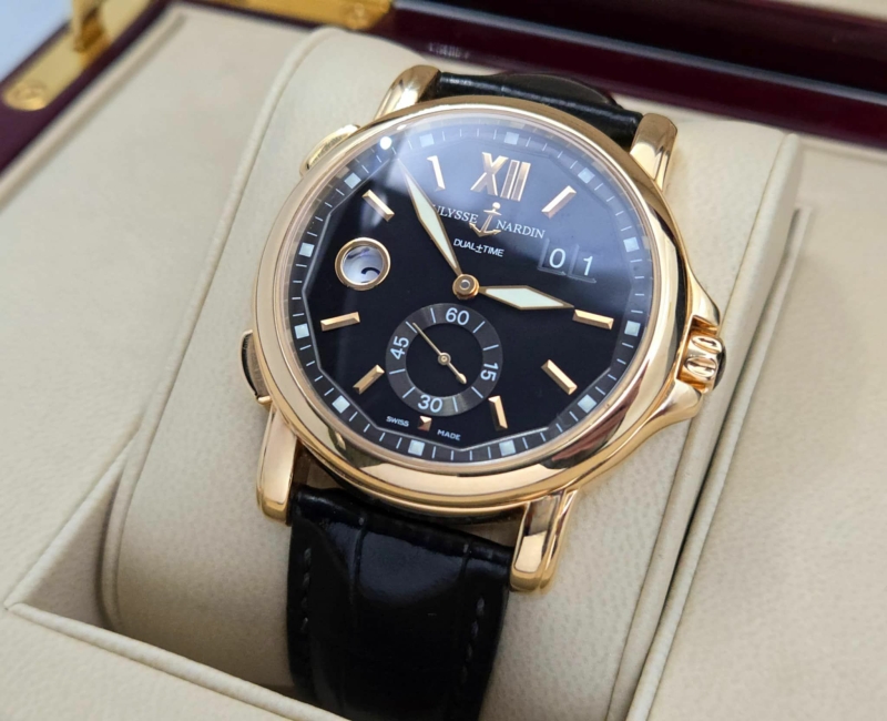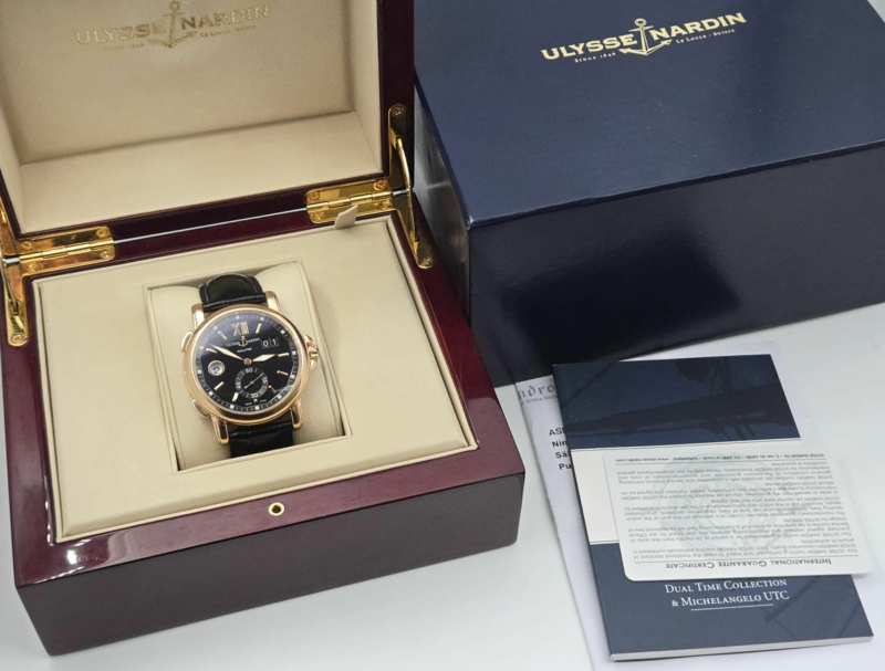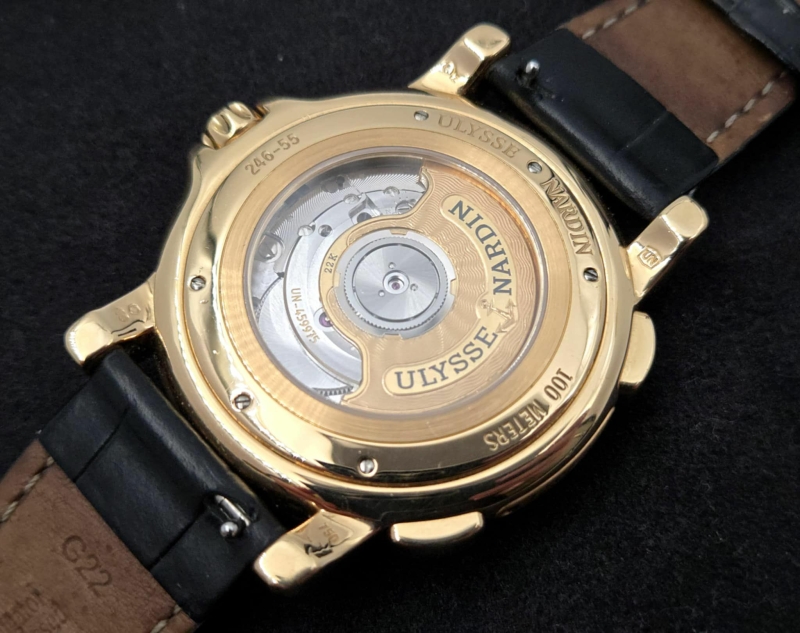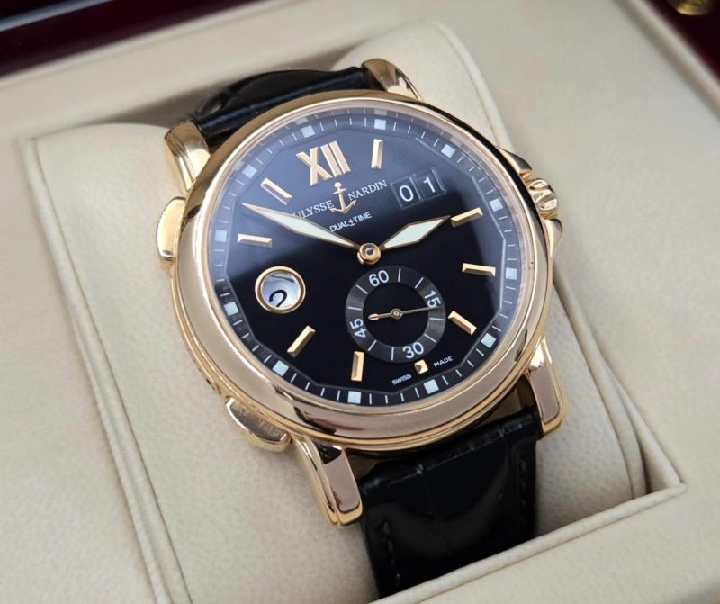 #1324 Rannekello: 18k kultainen Ulysse Nardin Maxi GMT Dual Time Automatic, 123,1g