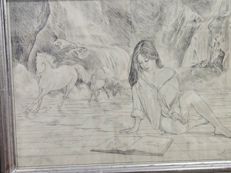 Piirretty kuultopaperille. Kehyksineen 60cm x 46,5cm