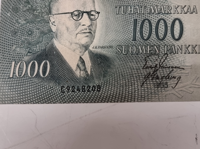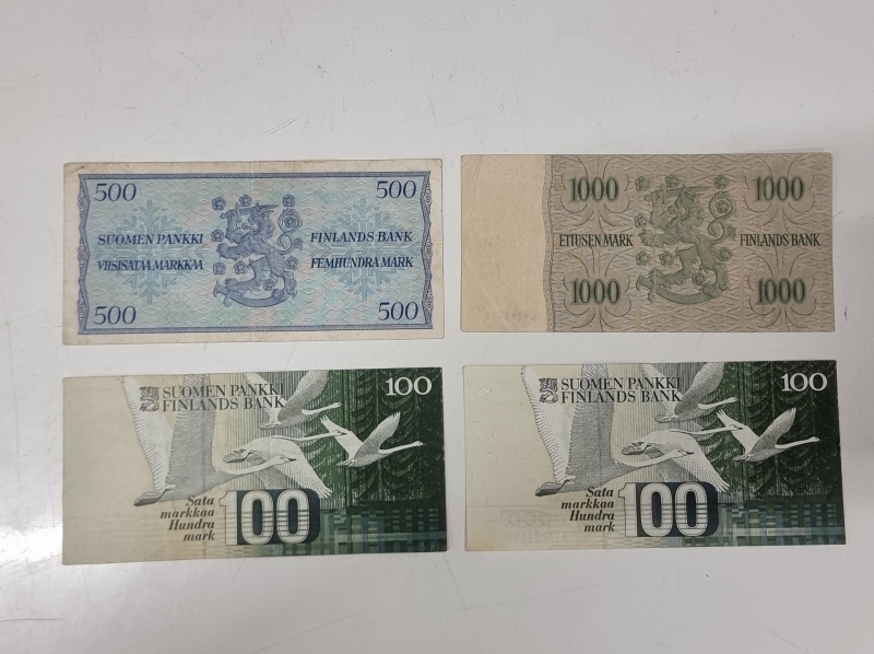 #1918 - 4kpl suomalaisia seteleitä: 500mk 1956, 1000mk 1955 ja 2kpl 100mk 1986