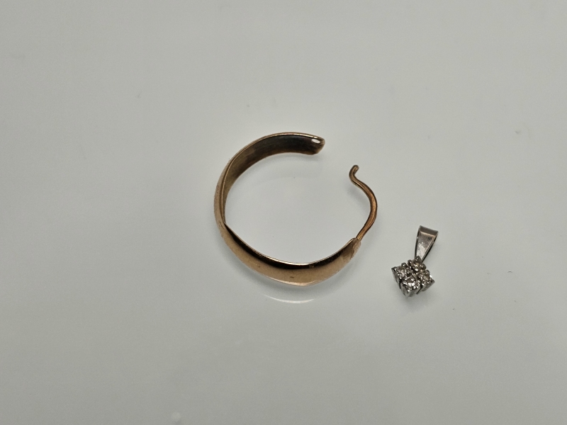 #1243 - 14k kultainen korvakoru & 14k valkokultainen riipus timanteilla, 1g