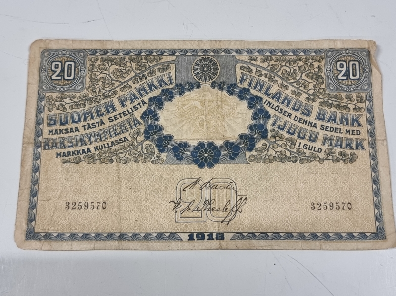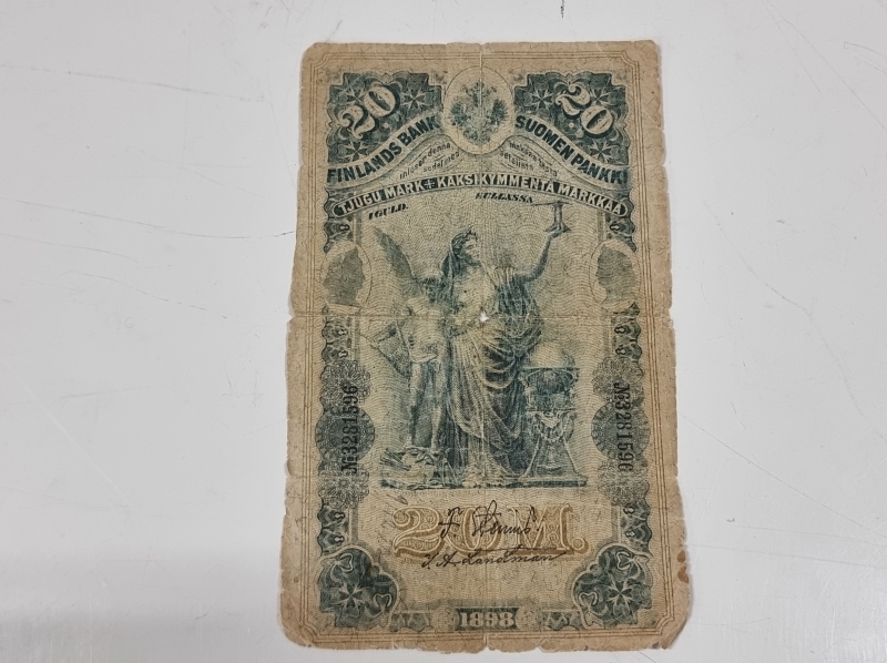 #2359 - 5kpl vanhoja suomalaisia seteleitä, mm. 20mk 1898 ja 1918