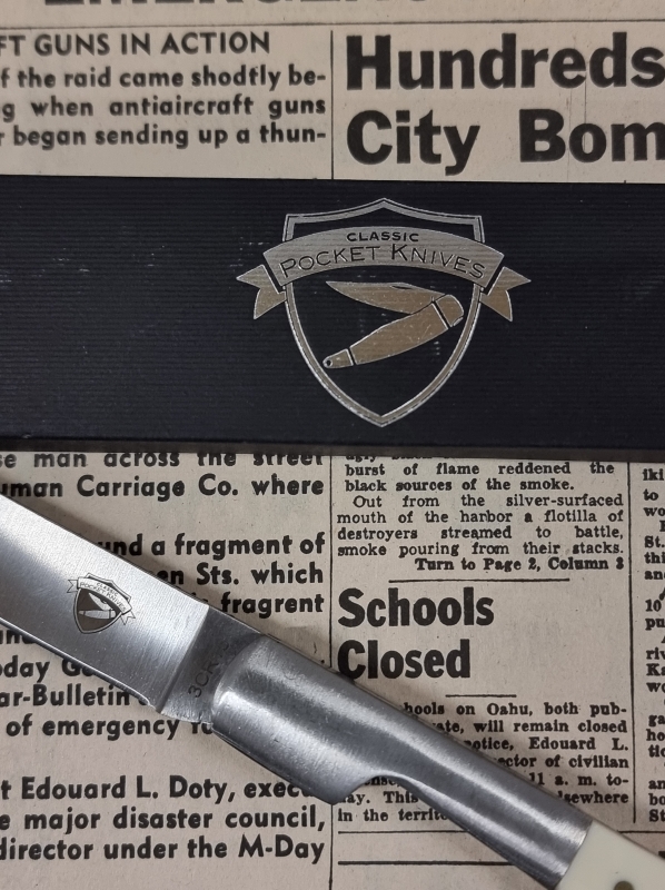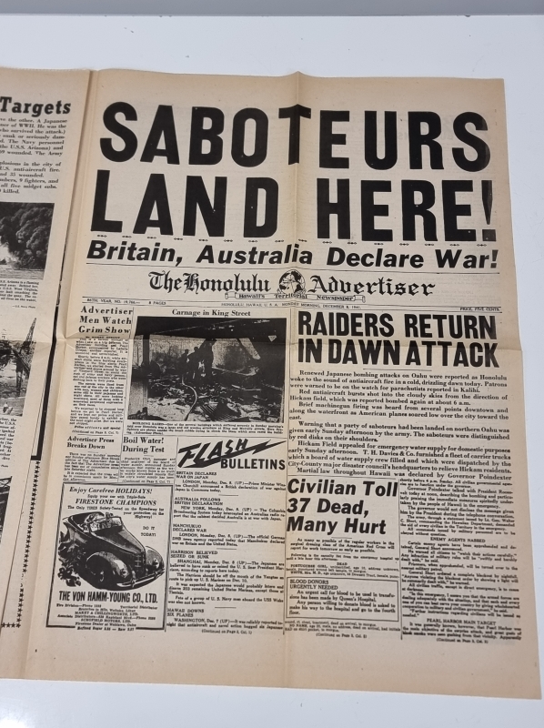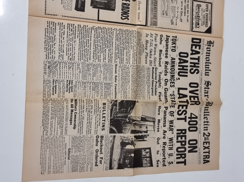 #2362 Uusintapainos vuoden 1941 Honolulu Star-Bulletin sanomalehdestä ja kääntöveitsi
