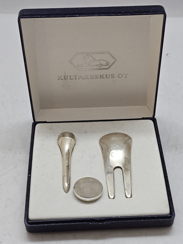 #1264 Hopeinen Kultakeskus Oy golf-setti