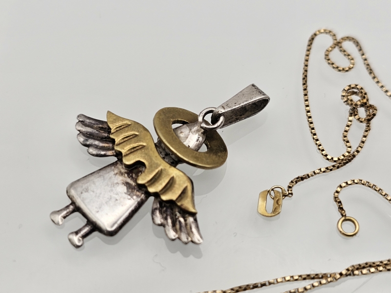 #1298 Hopeinen enkeliriipus + 14k kultainen ketju ilman lukkoa [1,42g]