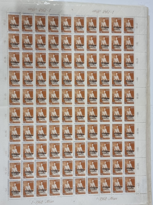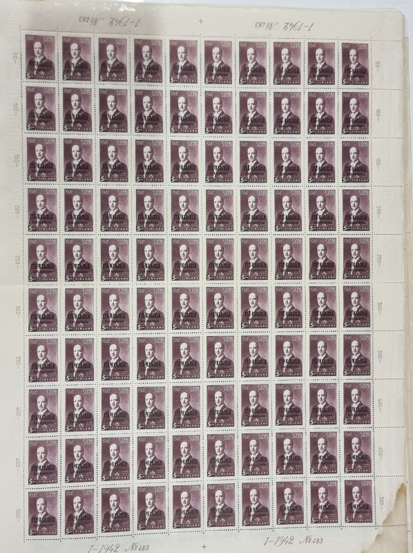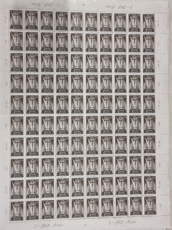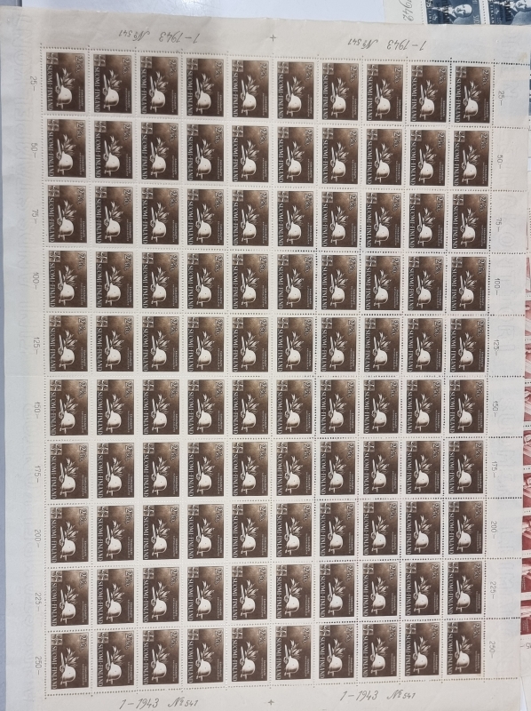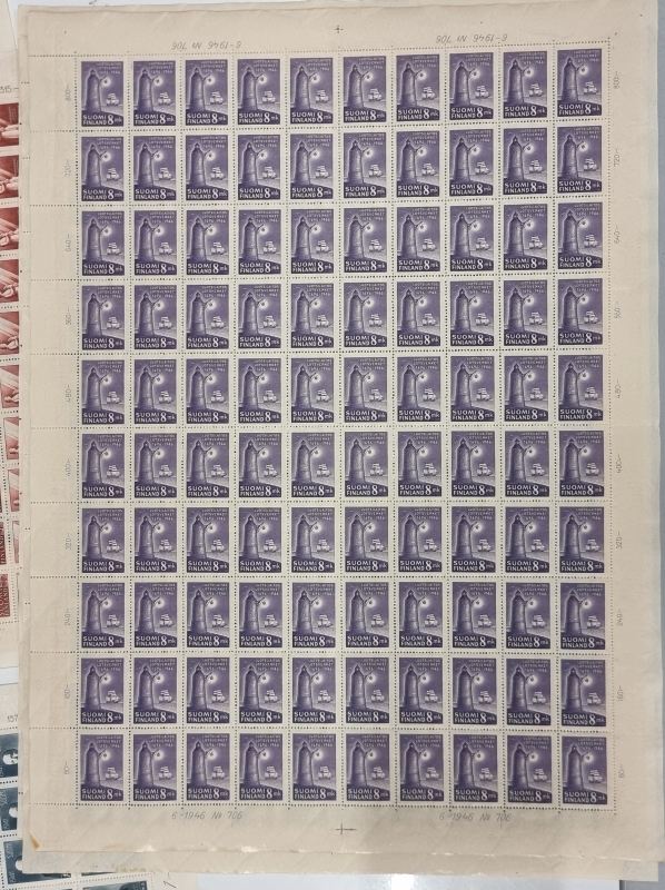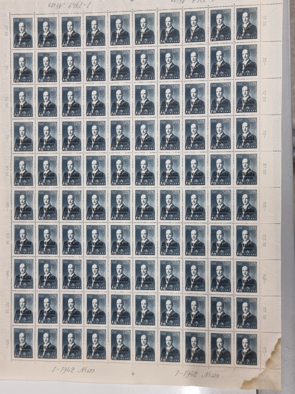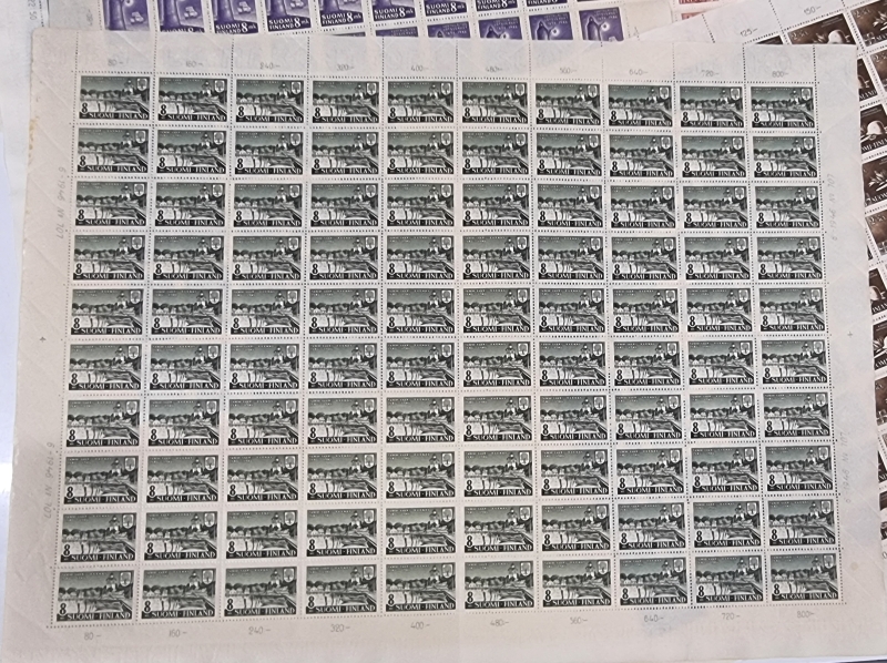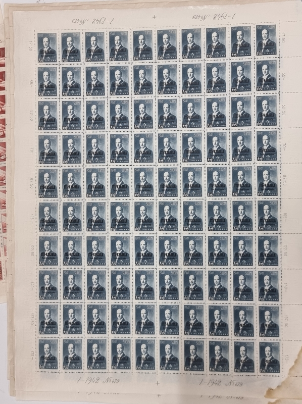 #1739 - 9 kpl postimerkkiarkkeja. Mm. Itä-Karjala sot. hallinto.