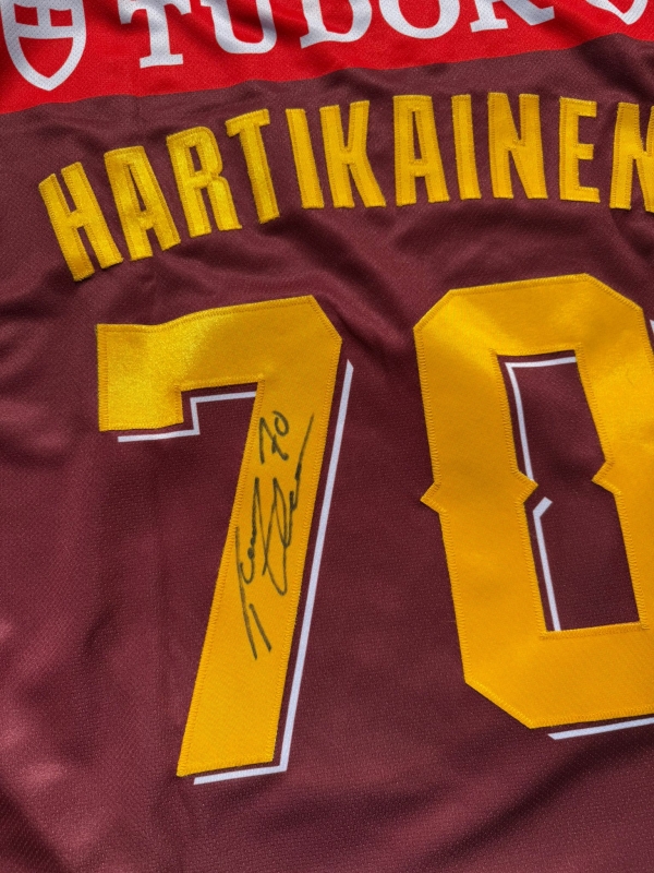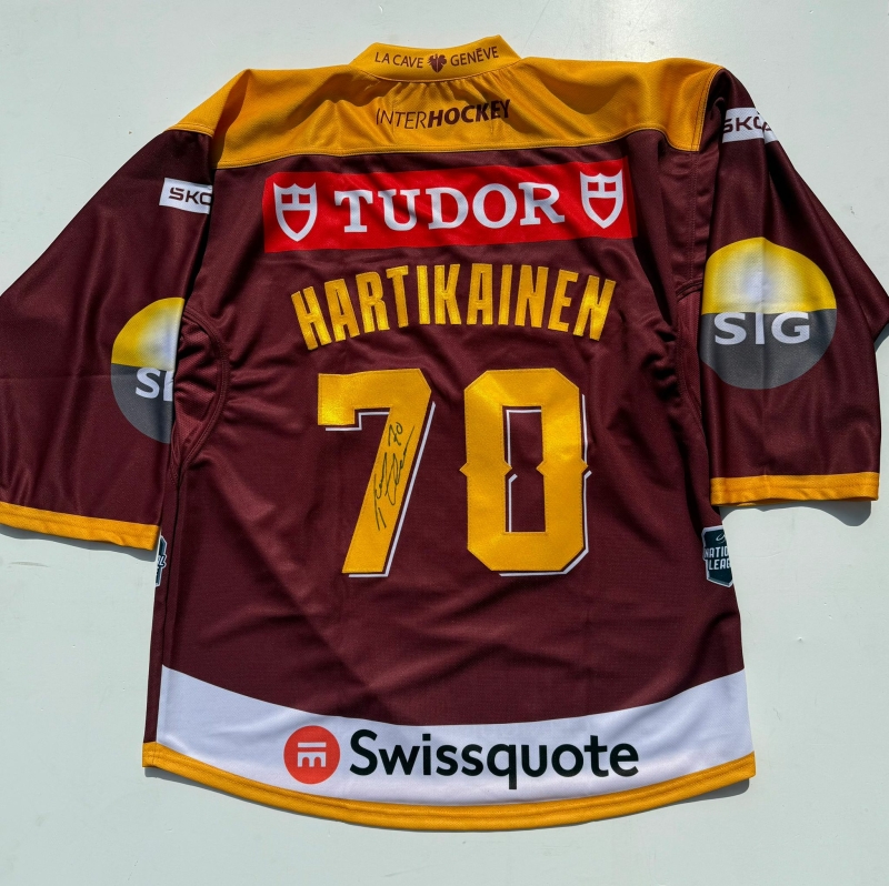 #1906 Teemu "Härski" Hartikainen, 2022 Olympia -ja MM voittaja, 2023 Sveitsin mestari, 2024 CHL-mestari, signeerattu käyttämätön aito pelipaita, Sveitsin National League vuodelta 2025