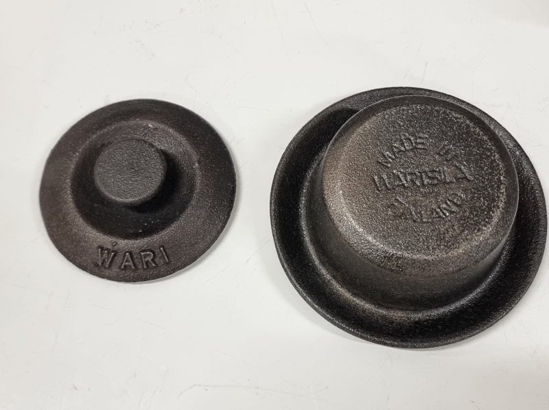 #2205 Erä vanhoja esineitä. Mm. 2kpl mortteleita ja tiinu v.1879