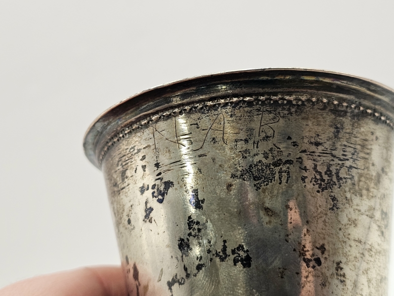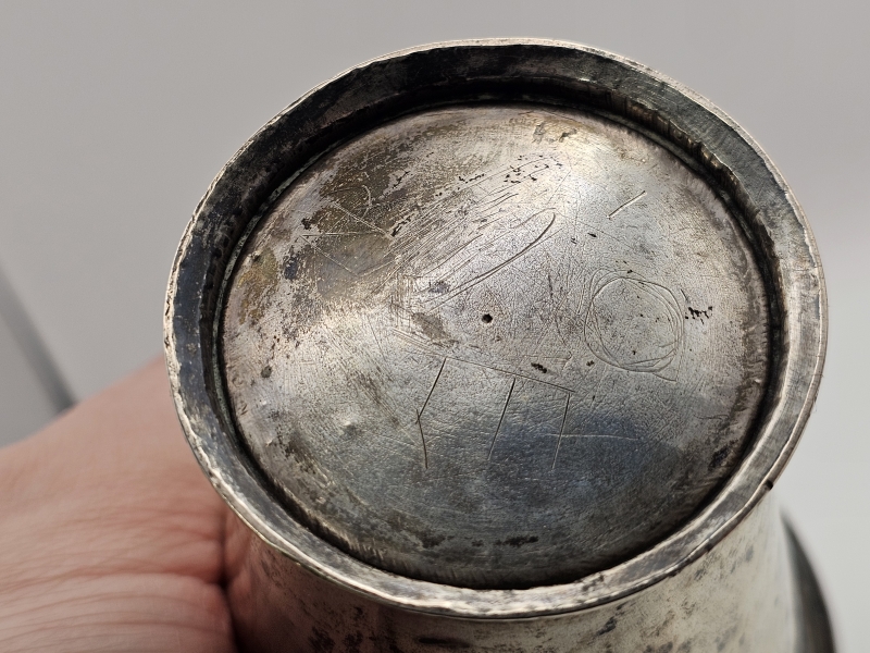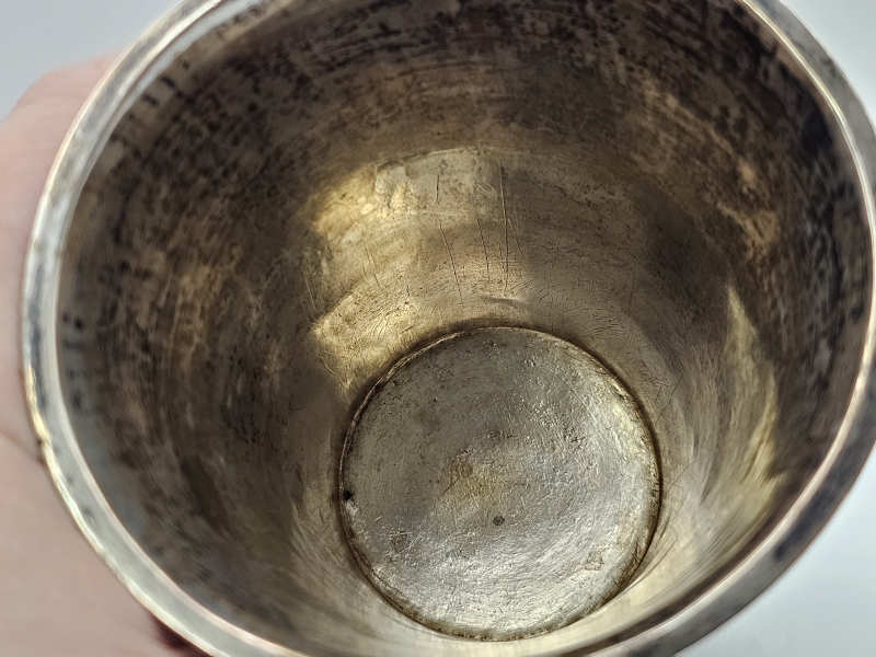 Ei leimoja, testattu hopeaksi XRF-laitteella. Paino 100g. Korkeus 9,5cm