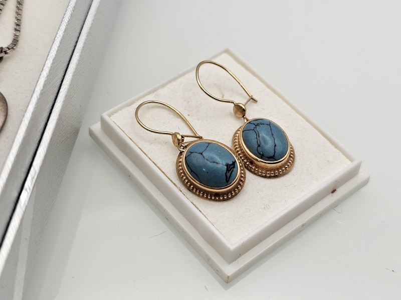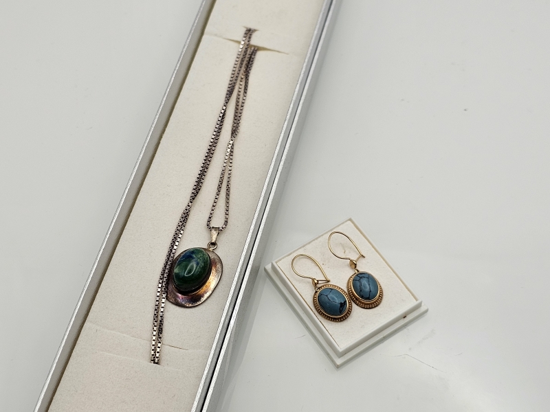 #1372 - Hopeinen kaulakoru & 14k kultaiset korvakorut turkooseilla [1,47g]