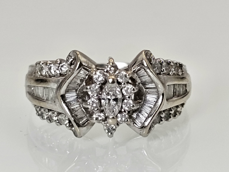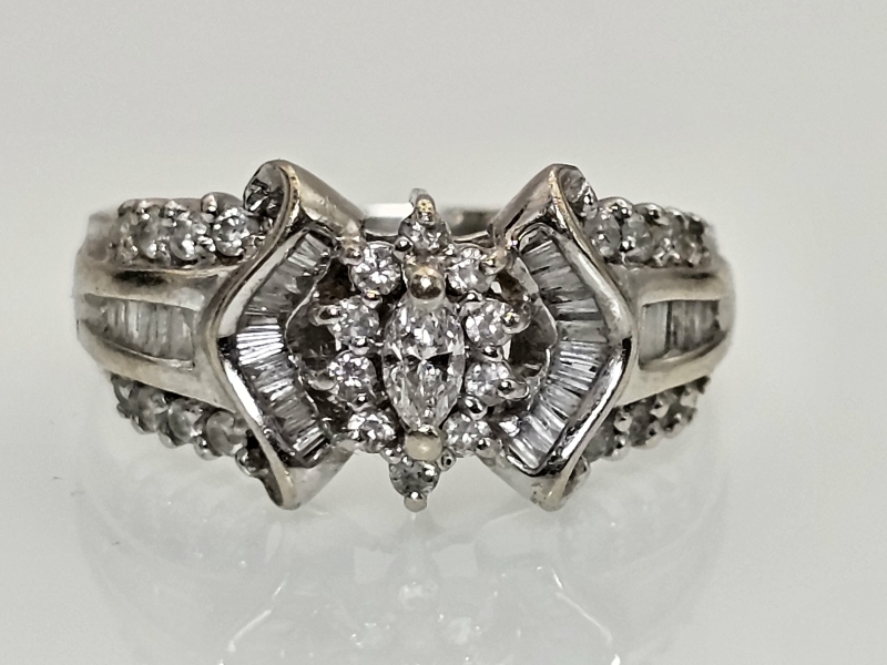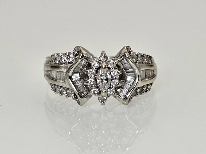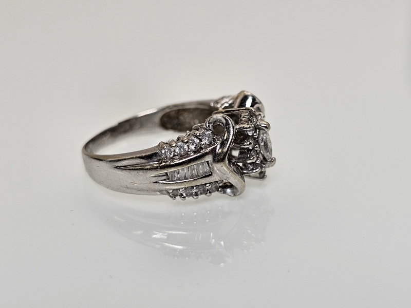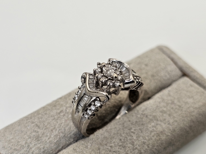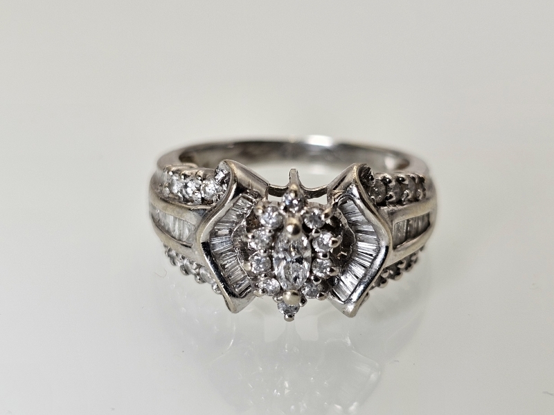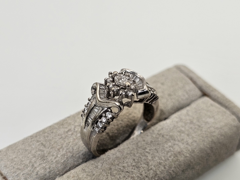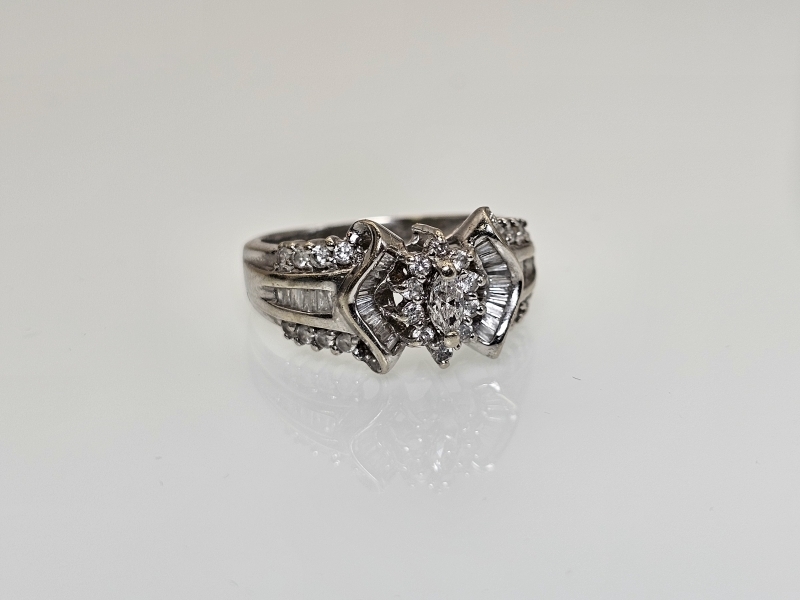 #1373 - 14k valkokultainen sormus runsailla timanteilla, 4,81g