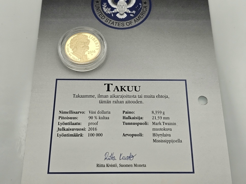 #1380 - Kultakolikko - Amerikkalaiset kultadollarit, Mark Twain, 8,359g