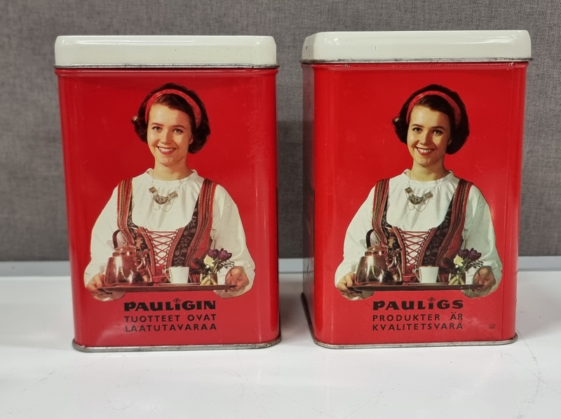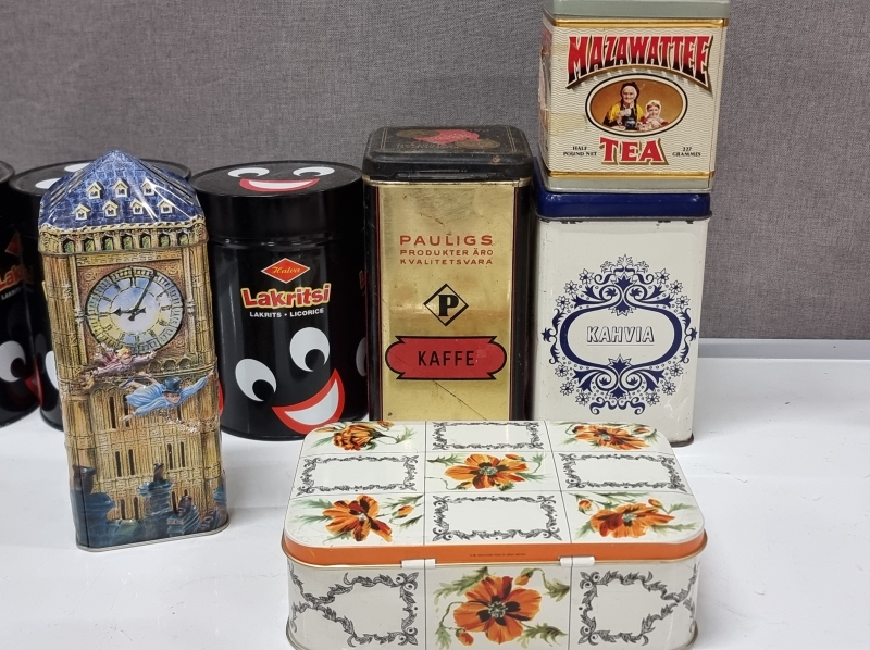 #2210 Erä peltipurkkeja. Mm. Paulig, Halvan lakritsi