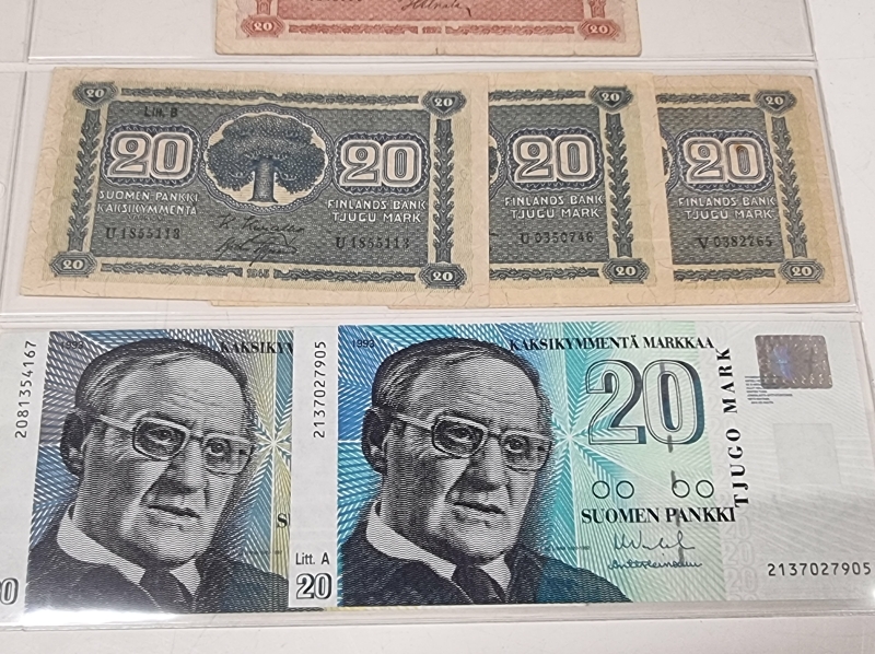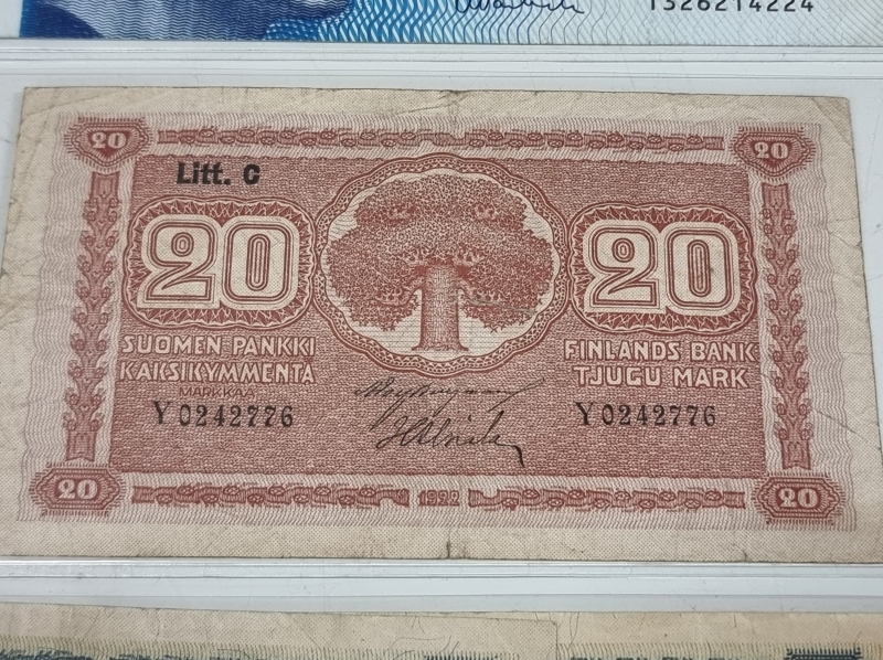 #2015 Erä suomalaisia seteleitä. Mm. 20mk 1922 j