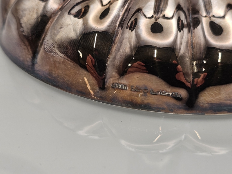 Paino 318g [vain pieni ei-hopeinen osa pohjassa]. Kaiverrus. L: 25,5cm, k: 24,5cm