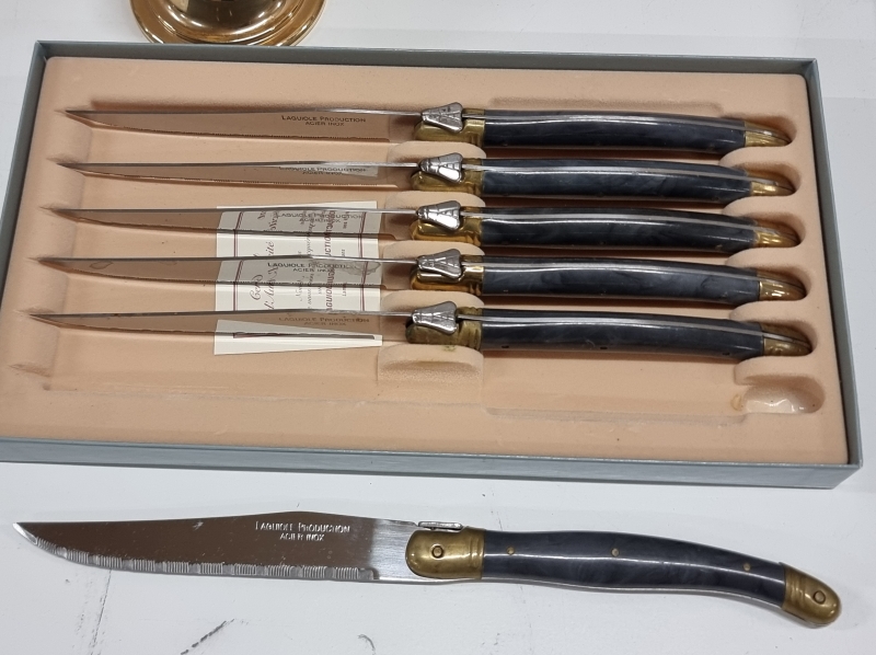 #2218 Alessi-tarjoiluastioita, Laquiole veitset ym.