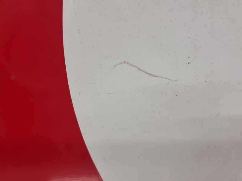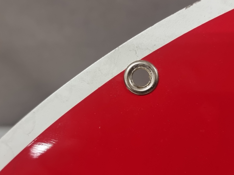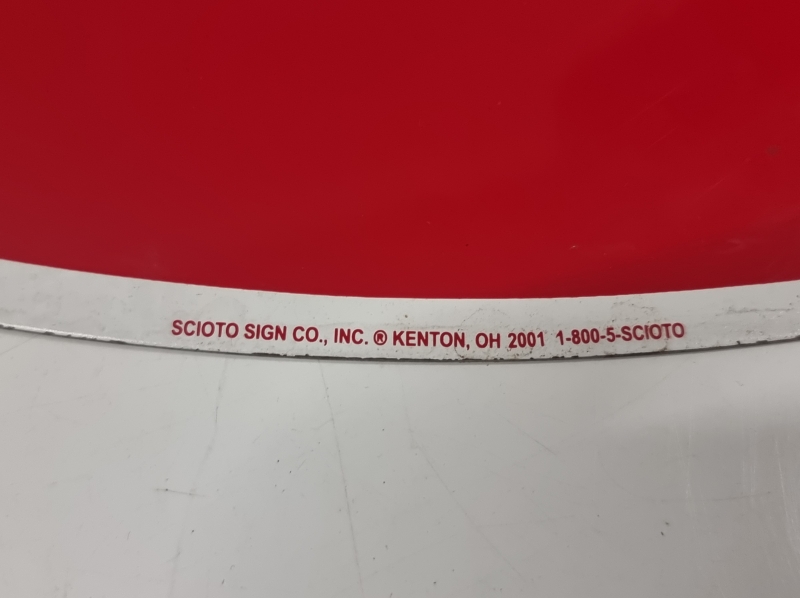 Scioto sign co. Kulumaa, toisella puolella suojamuovi paikoillaan. Halkaisija 59cm.