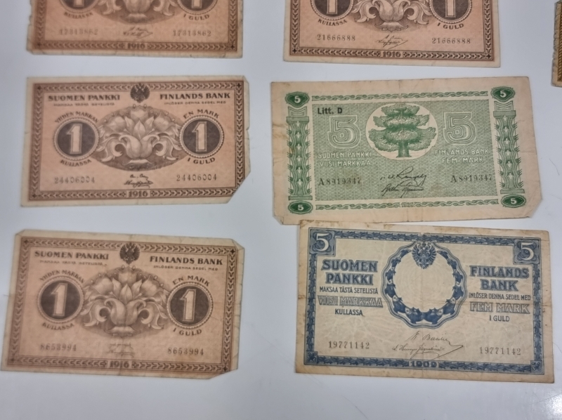 #1932 15kpl suomalaisia seteleitä. Mm. 5mk 1897 ja 5mk 1909