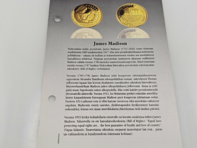 #1390 Kultakolikko - Amerikkalaiset kultadollarit, James Madison, 8,36g