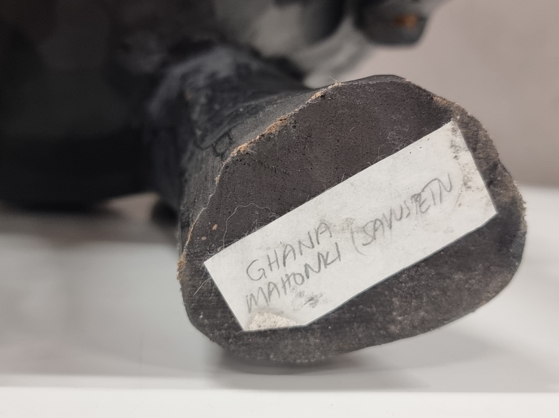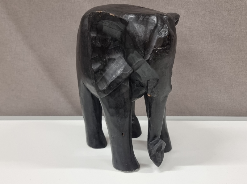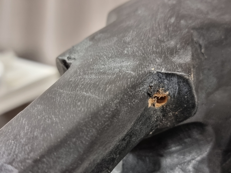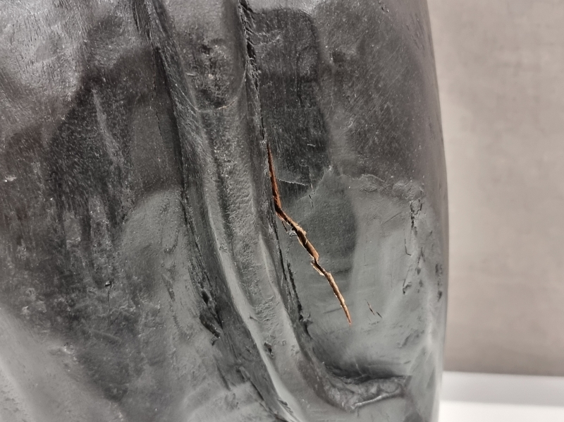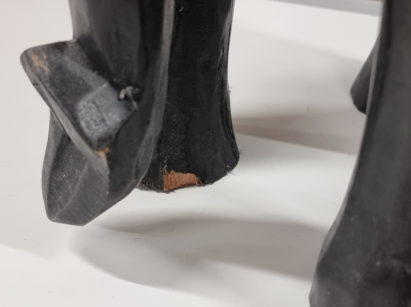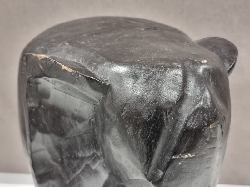 Etujalasta pala pois. Takaosassa kuivumishalkeama. Syöksyhampaat puuttuvat. Korkeus 39cm
