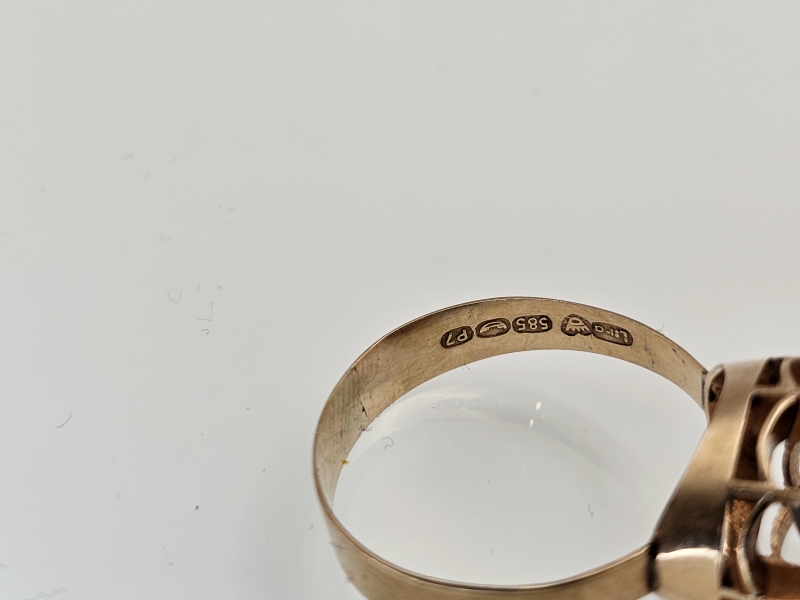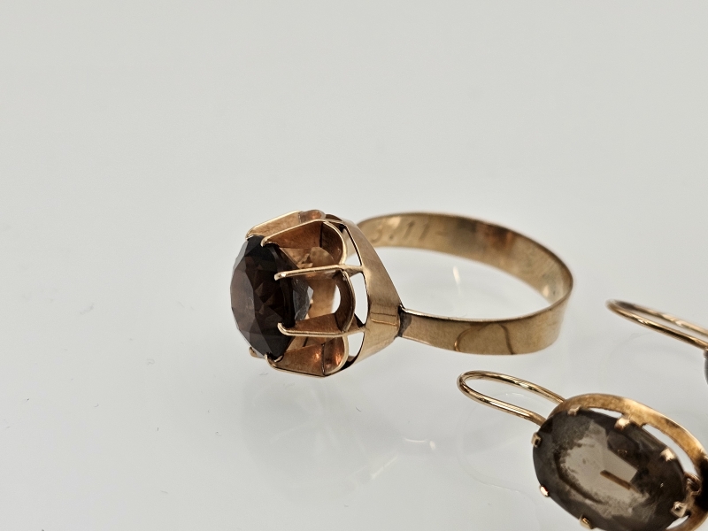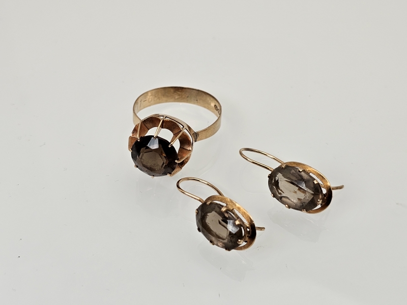 #1422 14k kultainen cocktailsormus & 14k korvakorut, 5,74g