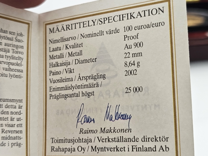 Paino 8,64g. Pitoisuus 900/1000