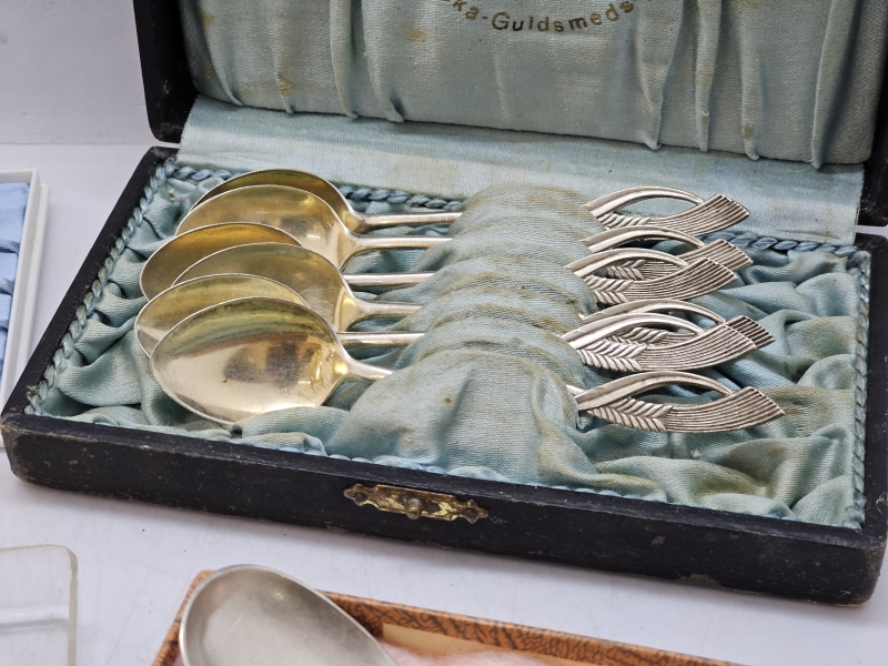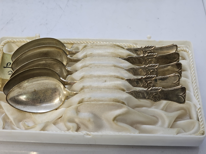 #1413 - Hopeisia kahvilusikoita + 5kpl alpakkalusikoita