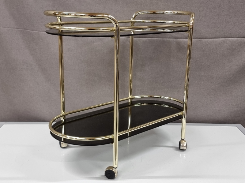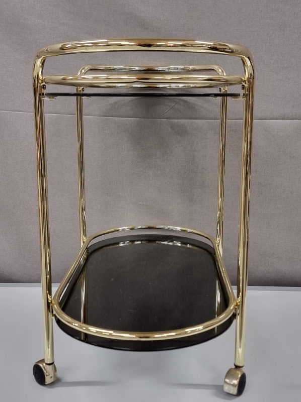 #2234 - Metallirunkoinen tarjoilukärry lasitasoilla