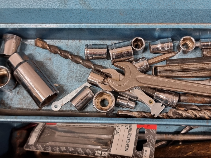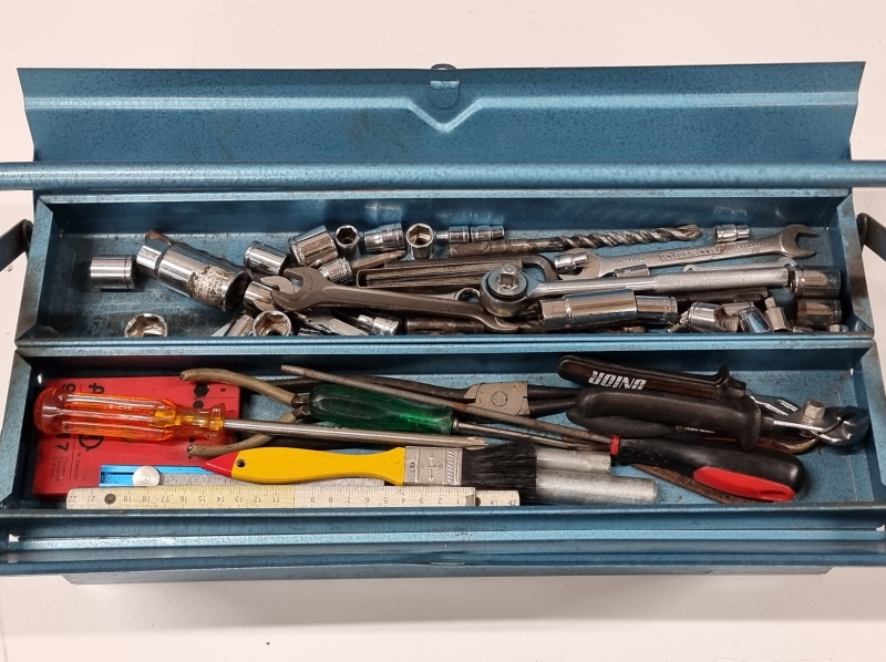 #2372 Metallinen työkalupakki työkaluineen.