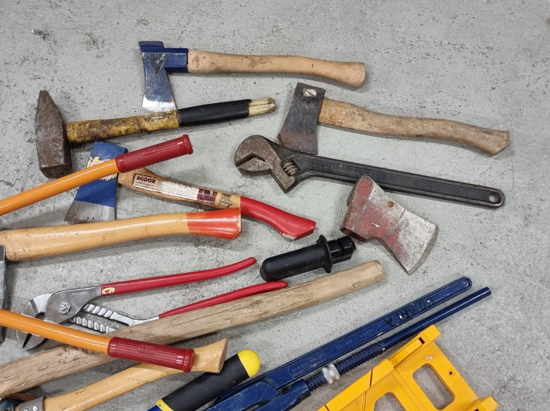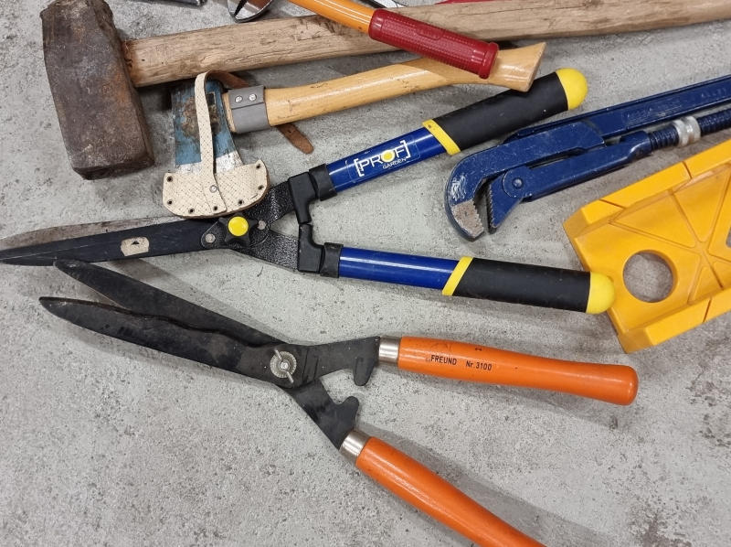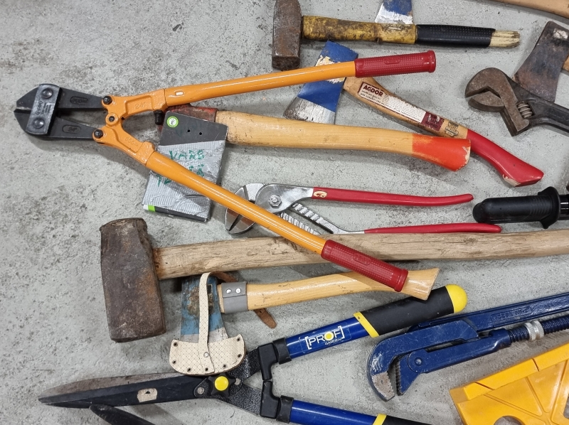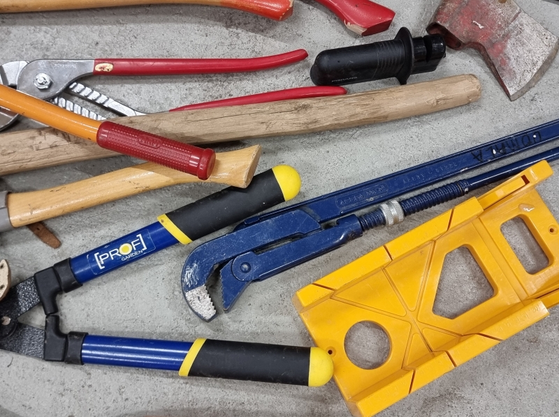 #2373 Erä työkaluja. Mm. Leka, voimapihdit ja putkitongit